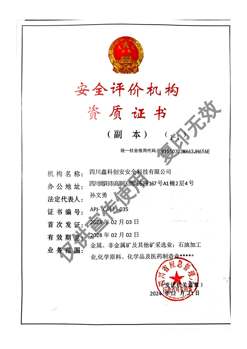 四川鑫科創(chuàng)安安全科技有限公司成立于2020年,是川北地區(qū)取得資質(zhì)的民營安全評(píng)價(jià)機(jī)構(gòu)(資質(zhì)證書編號(hào):APJ-(川)-035)。并于2022年?duì)款^成立綜合應(yīng)急救援隊(duì)伍 - 綿陽曙光應(yīng)急救援中心。